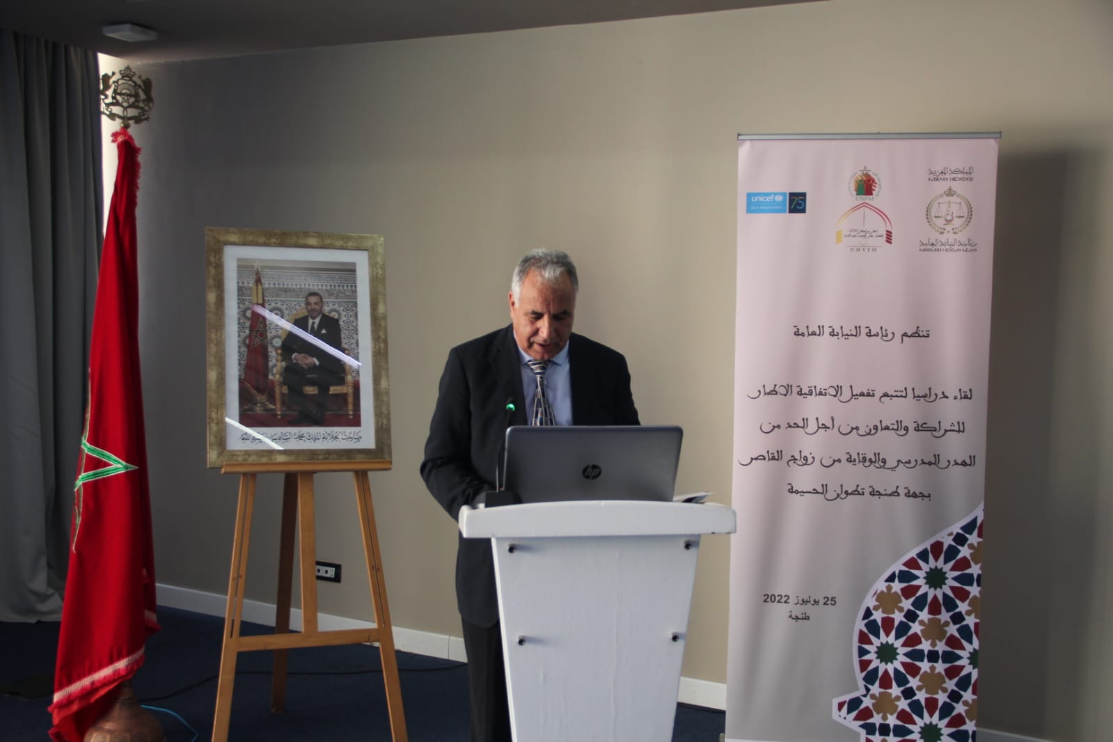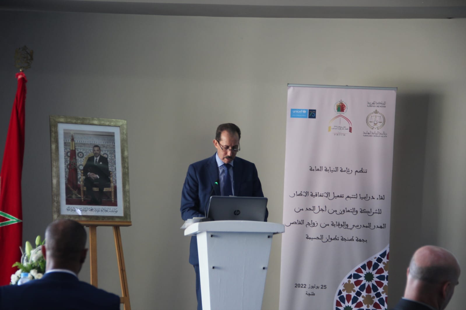 ويشارك في هذا اللقاء الدراسي ممثلون عن صندوق الأمم المتحدة للطفولة (يونيسيف) ومسؤولون قضائيون بمحاكم الاستئناف والمحاكم الابتدائية والتجارية، ومدير الأكاديمية الجهوية للتربية والتكوين، والمديرون الإقليميون للتربية الوطنية بجهة طنجة تطوان الحسيمة. قدما، كما تضع على عاتق الجميع عبء الالتزام بعدم تراجع هذه الأرقام حرصا على الحفاظ على الأطفال بمقاعد الدراسة.