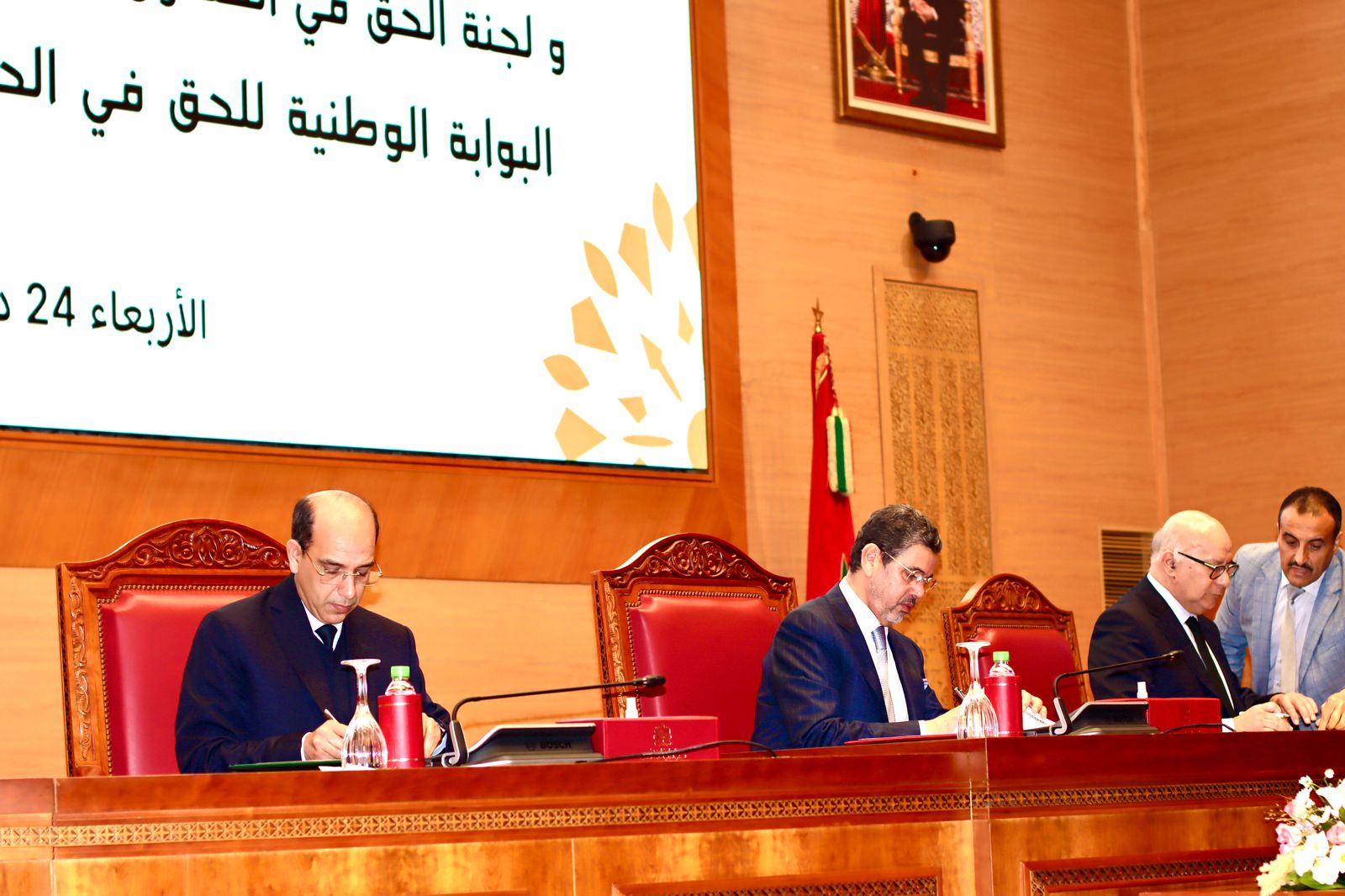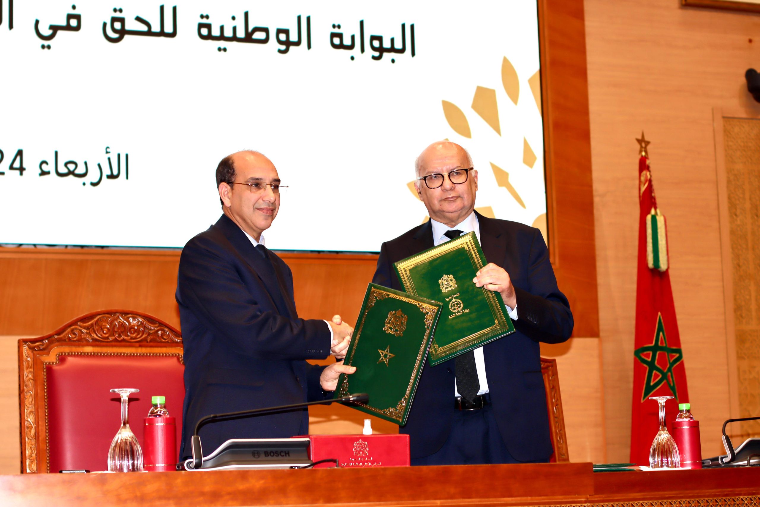 أشرف كل من الرئيس المنتدب للمجلس الأعلى للسلطة القضائية السيد محمد عبد النباوي والوكيل العام للملك لدى محكمة النقض رئيس النيابة العامة السيد هشام البلاوي والسيد عمر السغروشني رئيس لجنة الحق في الحصول على المعلومات، صباح اليوم الأربعاء 24 دجنبر 2025 بمقر المجلس الأعلى للسلطة القضائية على حفل توقيع اتفاقية شراكة تروم انضمام مكونات السلطة القضائية إلى البوابة الوطنية للحق في الحصول على المعلومات، تكريسا للحق الدستوري للمواطنات والمواطنين في الولوج إلى المعلومة.