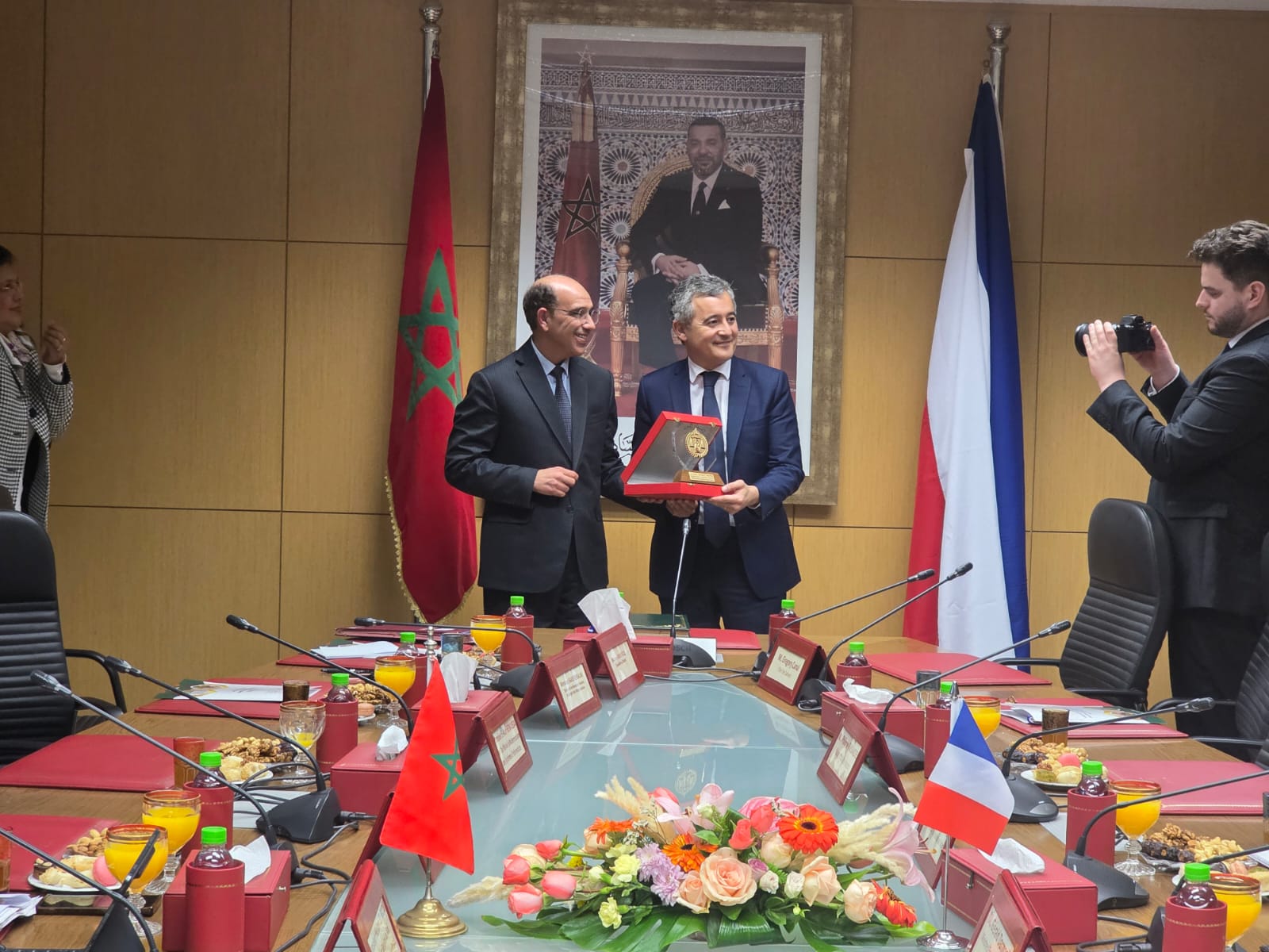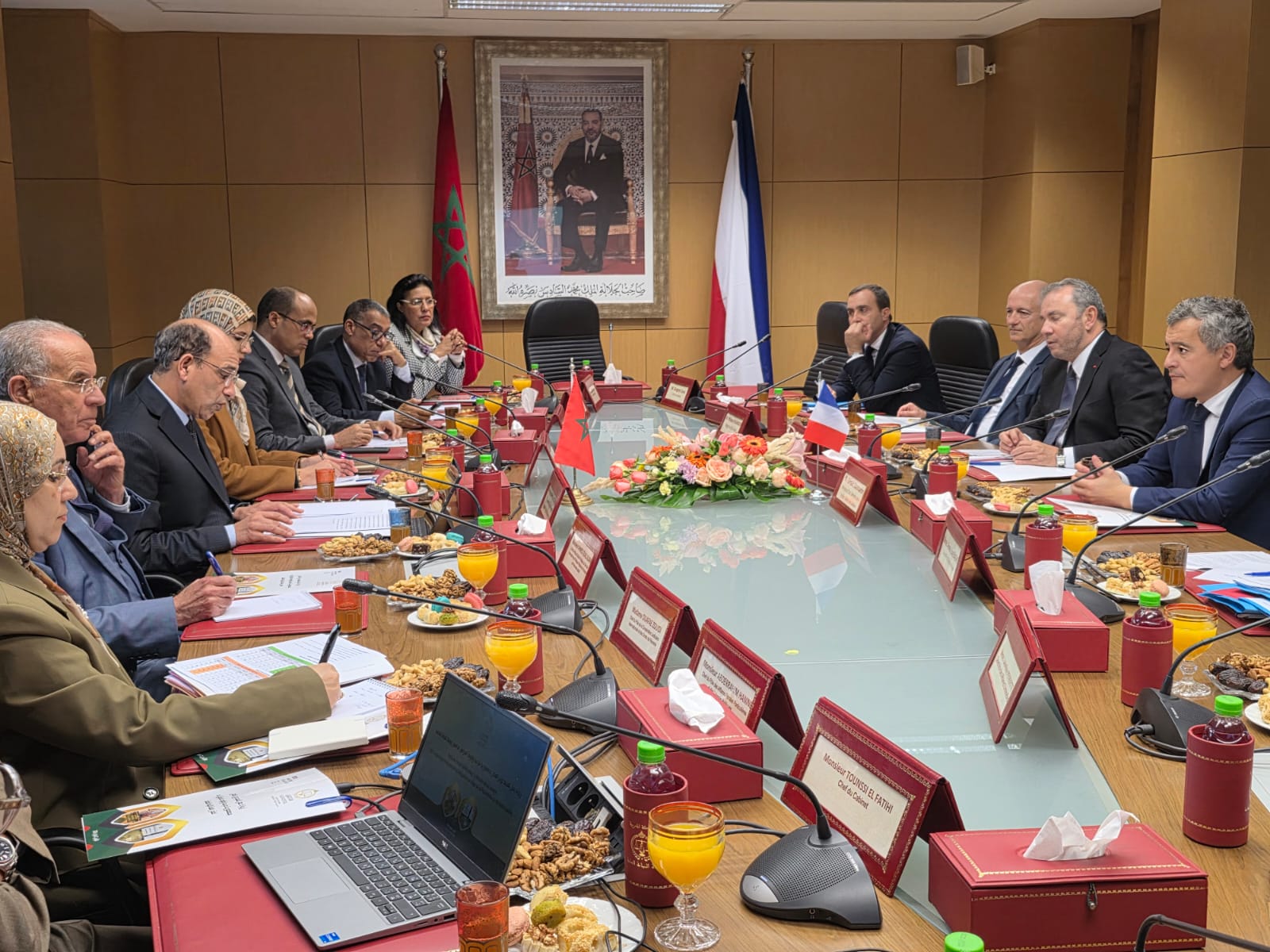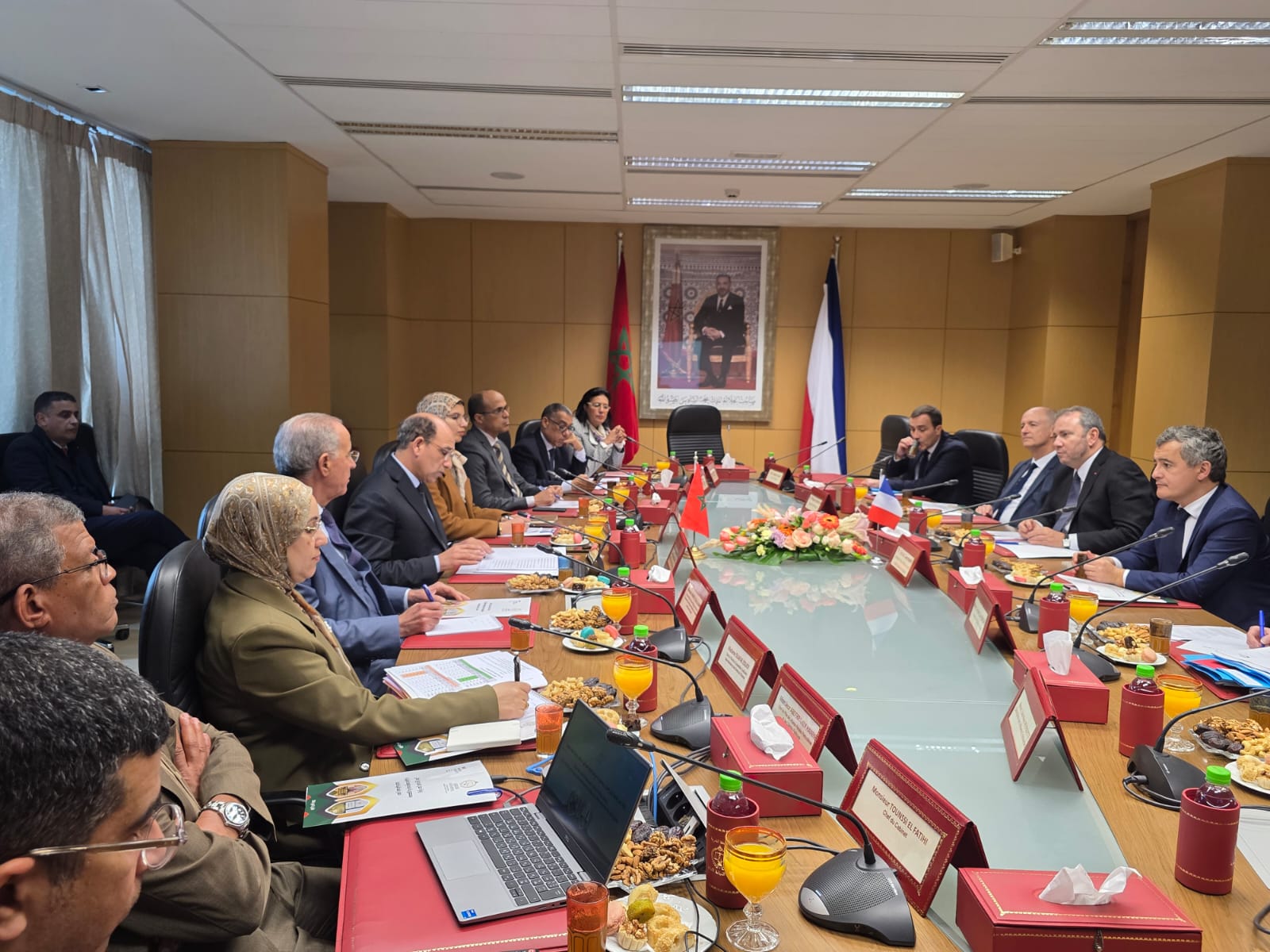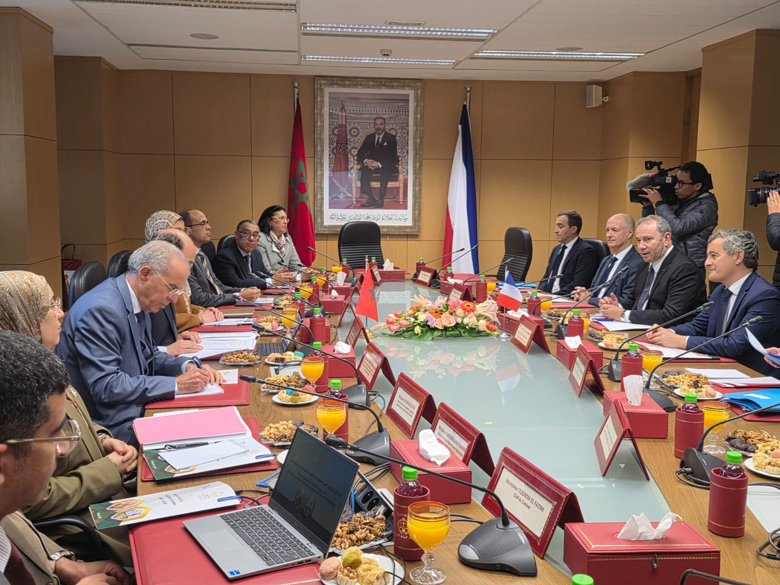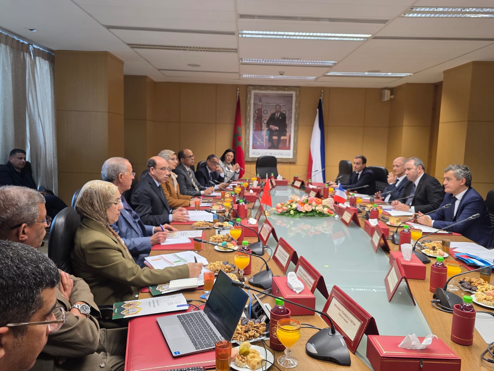 استقبل السيد هشام البلاوي الوكيل العام للملك لدى محكمة النقض رئيس النيابة العامة، يوم 02 فبراير 2026 بمقر رئاسة النيابة العامة بالرباط، السيد جيرالد درمانان وزير العدل لدى حكومة الجمهورية الفرنسية، وذلك في إطار تعزيز علاقات التعاون القضائي وتبادل الخبرات بين الجانبين.